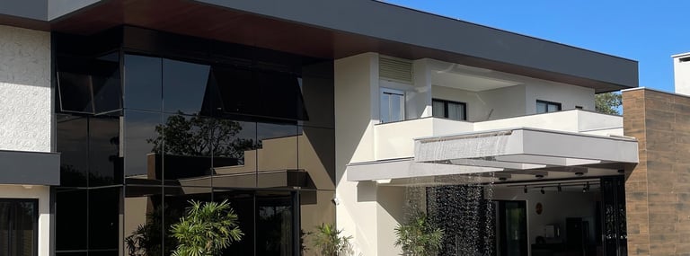 Este projeto é um exemplo de como a simplicidade pode ser combinada com a sofisticação para criar uma arquitetura contemporânea marcante. A fachada utiliza amplamente o vidro, promovendo a integração entre os ambientes internos e externos, além de permitir a entrada de luz natural, criando um efeito visual leve e elegante
