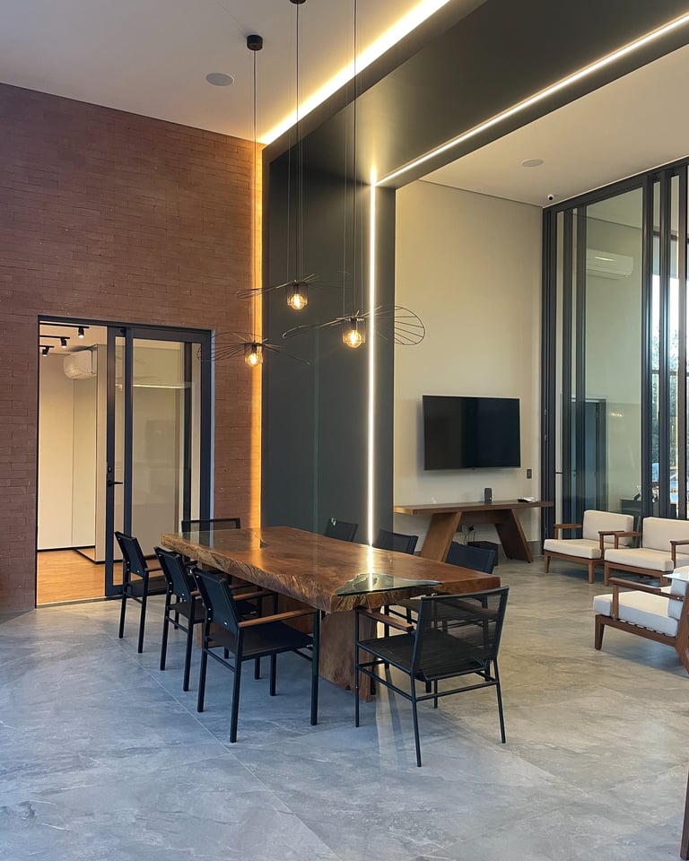 A arquitetura moderna de Brasília é sinônimo de linhas retas, espaços amplos e integração harmoniosa entre interior e exterior. Este projeto reflete perfeitamente essa essência, combinando o estilo contemporâneo com ambientes internos sofisticados, minimalistas e funcionais. A ampla fachada de vidro permite uma conexão direta com o exterior, trazendo luminosidade natural e enfatizando a elegância dos detalhes cuidadosamente planejados.